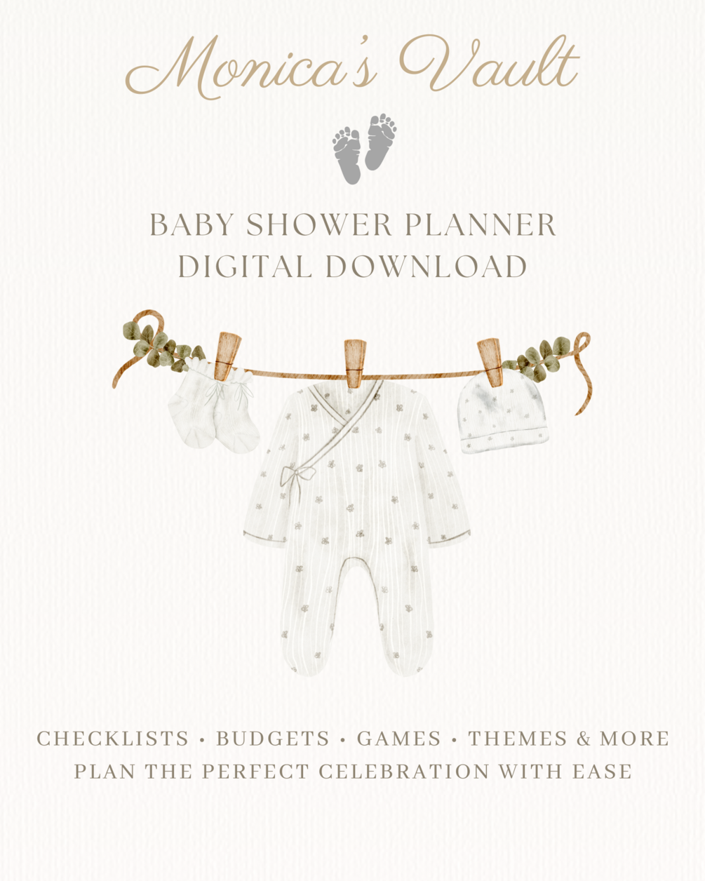 Monica’s Vault Digital Print-Out Baby Shower Planner is your all-in-one guide to creating a beautiful and stress-free celebration for the parents-to-be. Thoughtfully designed with love and creativity, this planner includes everything you need to organize the perfect shower from start to finish.